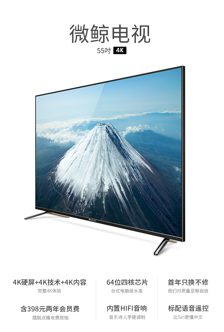 电视机 > 微鲸(WHALEY)WTV55K1J 55英寸智能4K超清 平板电视...